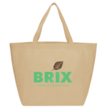 The YaYa Budget Non-Woven Shopper Tote has a large open main compartment with double 20 inch reinforced handles. It's completely reusable and a great alternative to plastic bags. Gusset & Handle Decorating does not qualify for one day turn. Bag is flared at the top and 19.5" wide when laid flat or when not fully stuffed. Bottom is 12" in width or when bag is fully stuffed. Polypropylene is recyclable with #5 plastics please check with your local municipalities for specific rules and regulations.