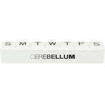 The 7-Day Pill Case is a storage box that features seven compartments and a conveniently labeled day of the week on the hinged, snap-up lid.