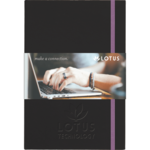 Elevate your brand with this full color, custom bound journal. Features a built in elastic closure, ribbon page marker and 96 sheets of cream lined paper. Customizable full color graphic wrap and oversize blind deboss decoration included in pricing.