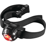 Rotating bezel design lets user angle the light in various directions. 2 super bright white LED plus one red (night vision) LED Water resistant. Adjustable head strap. 2 lithium batteries included.